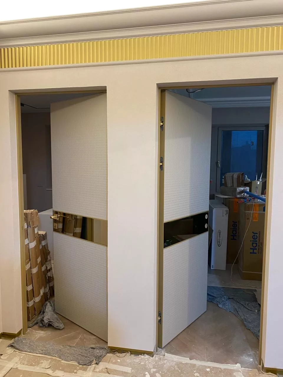 Стиль арт-деко отличает исключительно строгая и четкая геометрия форм, правильные орнаменты, вертикальные и горизонтальные линии. Кроме этого, энергичные оттенки и сочетания цветов, которые вызывают положительные эмоции, выделяя межкомнатную дверь как центральный объект в интерьере.